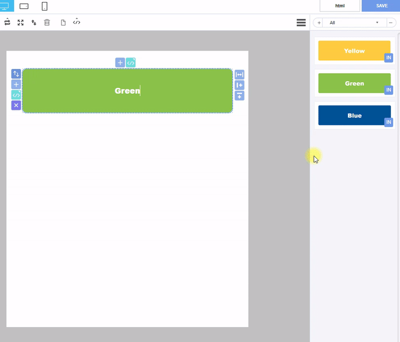 The right block can be brought to the editing area by "drag & drop" or "double-click".