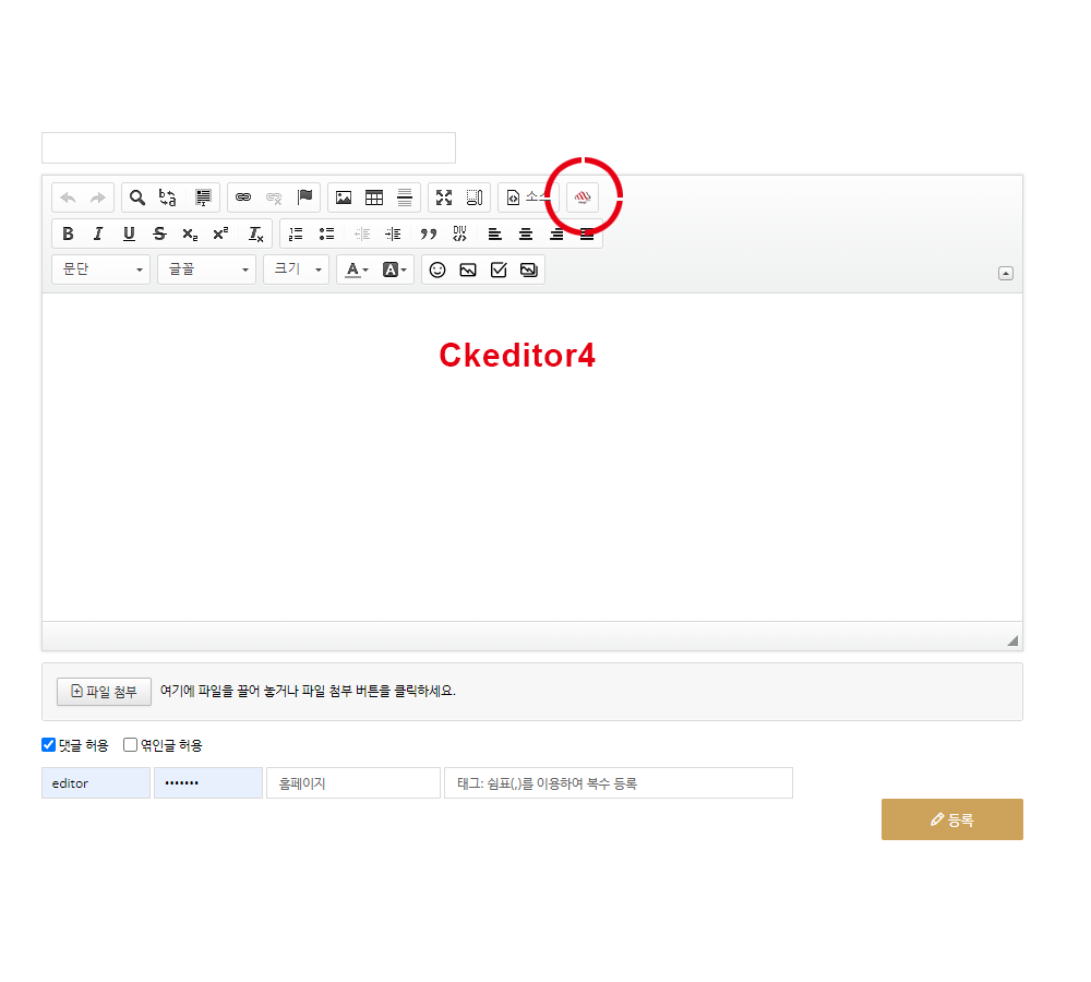 In XpressEngine, the Mong9 editor functions as an add-on.